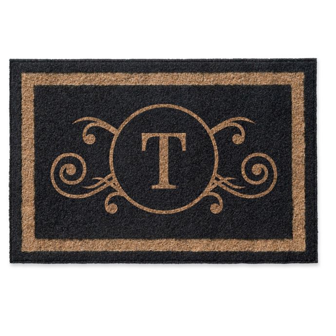Evergreen Embossed Flocked Monogram Door Mat Insert In Black Bed Bath Beyond
